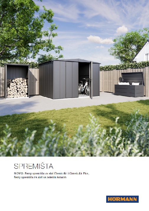 Samo kod Hörmann dostupna Berry spremišta za alat Classic Air i Classic Air Plus imaju ventilacijske presjeke koji osiguravaju prirodno prozračivanje te su stoga primjerice idealna za odlaganje kanti za smeće ili kao spremište za bicikle. Classic Air varijanta sa tri reda rupica pruža dobru ventilaciju te istovremeno smanjuje pogled u spremište s alatom. Classic Air Plus varijanta s osam redova rupica pruža obilje svjetla i izvrsnu ventilaciju. Opcionalno su kao dodatni pribor dostupne odgovarajuće ventilacijske rešetke. Berry spremišta za alat Classic Air i Classic Air Plus dostupna su kako s jednoslivnim tako i s dvoslivnim krovom.